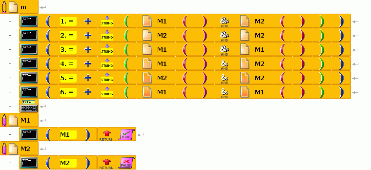 | Příklad (For modes 2D, 3D, Console) |    | | Vypíše na obrazovku true, pokud jsou oba výrazy rovny pravdě, nebo false, pokud alespoň jeden výraz není roven pravdě. | | |