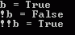 | Do proměnné b typu bool vloží hodnotu true. Poté vypíše na obrazovku hodnotu proměnné b (true), negaci proměnné b (false) a negaci z negace z proměnné b (true). | | |