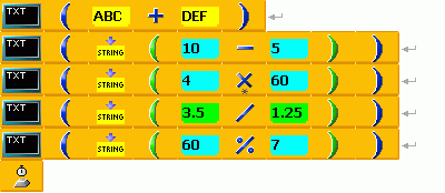 | Vloží do příslušného typu promněnné čísla, řetězce a vytvoří jejich součty nebo spojení do řetězce. | | |